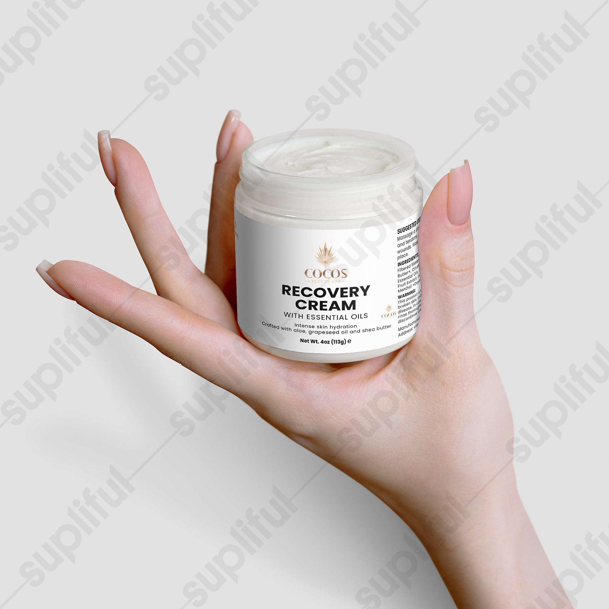 Experience the ultimate comfort with our specially formulated Recovery Cream—a premium cosmetic skincare solution that combines the properties of aloe, grapeseed oil, and our essential oil blend to provide a silky, hydrating sensation for your skin.
